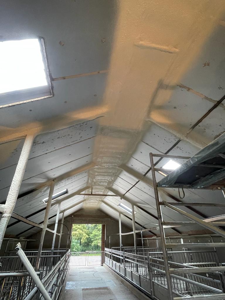 Pluimers isolatie heeft bij deze stal in Eibergen de naden en kieren naadloos afgedicht met HR IsoSpray HFO. Dit resulteert in een betere isolatie, lagere energiekosten en een comfortabelere omgeving voor de dieren in de stal.